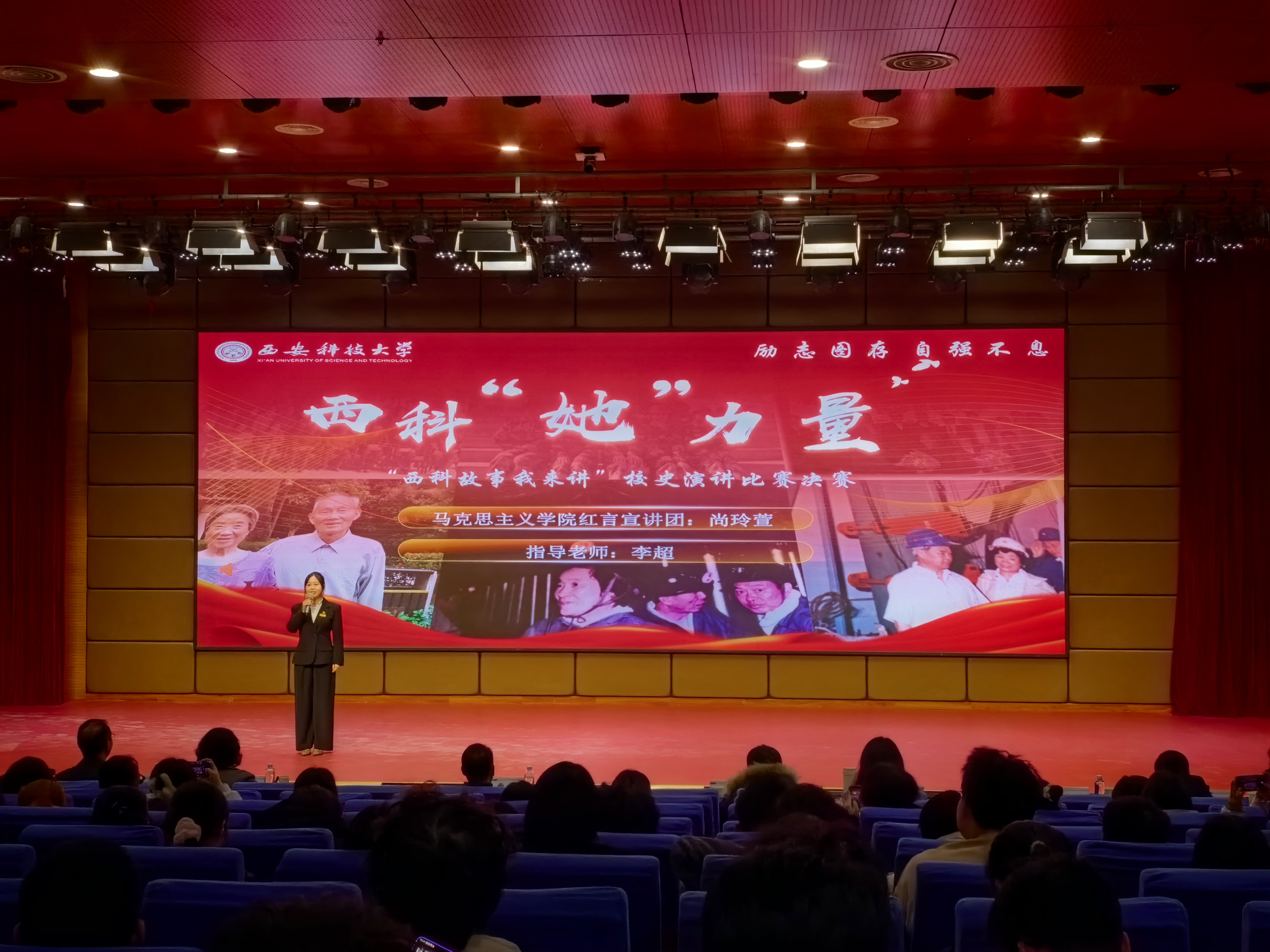 张建华以《篓筐载文脉,风骨续华章》为题,以真挚饱满的情感、生动鲜活的讲述,带领现场观众重温烽火岁月中的文脉守护。他娓娓道来徐文昇老师与504块地质标本的故事:抗战时期,这批跨越38个国家的“全球地质百科”随校西迁,历经辗转不离不弃;“文革”动乱中,徐老师用篓筐背着标本翻山越岭,乞讨果腹也要守护学术珍宝,临终前更执意葬于骊山,只为守望毕生牵挂的“石头宝贝”。一段段感人至深的校史片段,让现场观众深刻感悟到“祖国利益高于一切”校训背后的责任与担当。